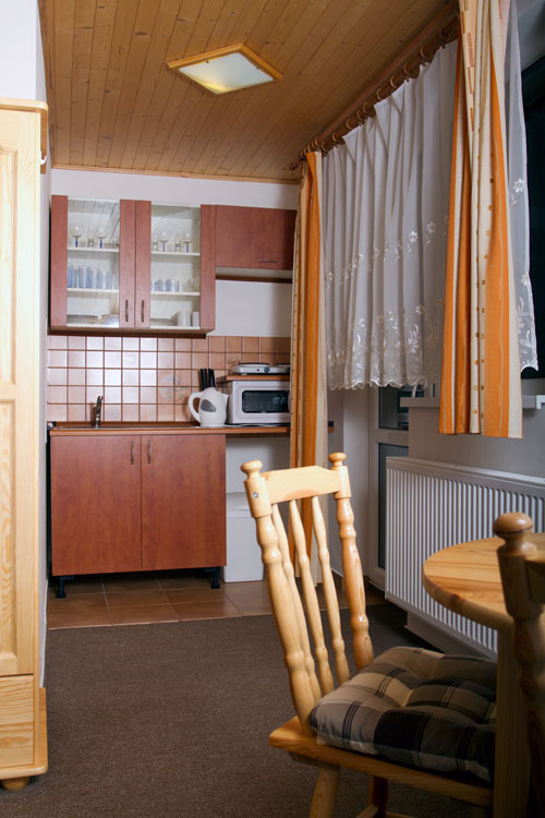 Severozápadný apartmán pomenovaný po mladšom bračekovi pani domu Jarkovi, je umiestnený na poschodí Nášho rodinného domu. Je vybavený dvojlôžkom + možná prístelka. Má plnohodnotnú kuchynku (drez, dvojplatnička, mikrovlnná rúra, varná kanvica, štandardné vybavenie kuchyne, chladnička na chodbičke), WC s kúpeľňou, TV/SAT/WiFi a priamy prístup na balkón.