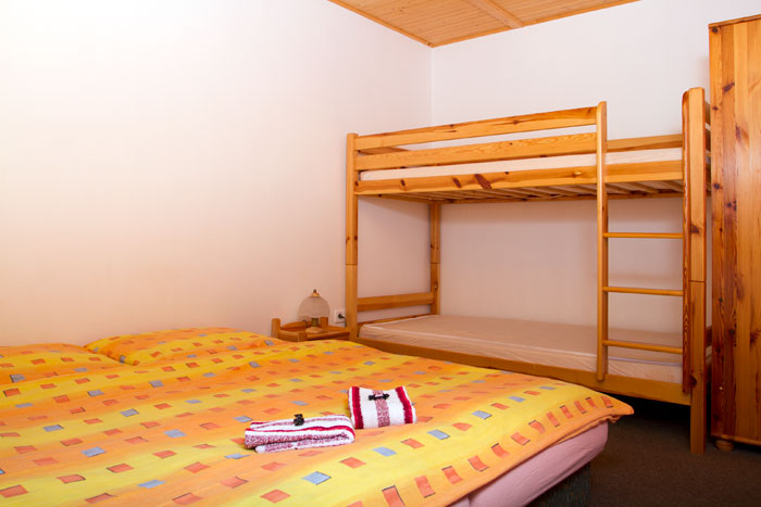 Juhozápadný apartmán pomenovaný po banjistovi kapely "Mrzkáni" je umiestnený na prízemí Nášho apartmánového domu. Je vybavený dvojlôžkom a poschodovou posteľou. Má vlastný kuchynský kút (mikrovlnná rúra, varná kanvica, štandardné vybavenie kuchyne bez drezu, chladnička na chodbičke), WC s kúpeľňou a vyhrievanou podlahou, TV/SAT/WiFi a priamy prístup na terasu.